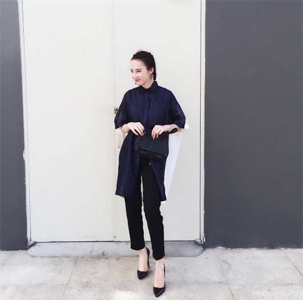 style của cô nàng luôn là sự biến hoá không ngừng. Ở một set đồ khác là
