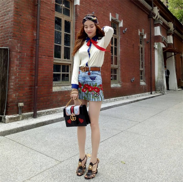 Hà Hồ ngày càng ưu ái hàng hiệu hơn khi chỉ với phong cách street style nhưng người đẹp vẫn diện nguyên cả cây Gucci đẳng cấp.