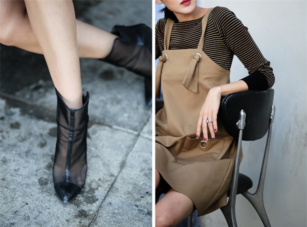 áo khoác, chân váy cho tới giày bệt mũi nhọn đều được kết hợp