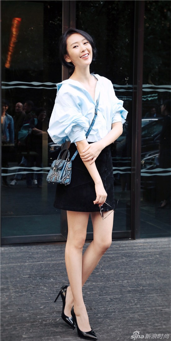 ý cùng quần ống suông viền gấu cao, cô nàng kết hợp cùng túi đeo chéo