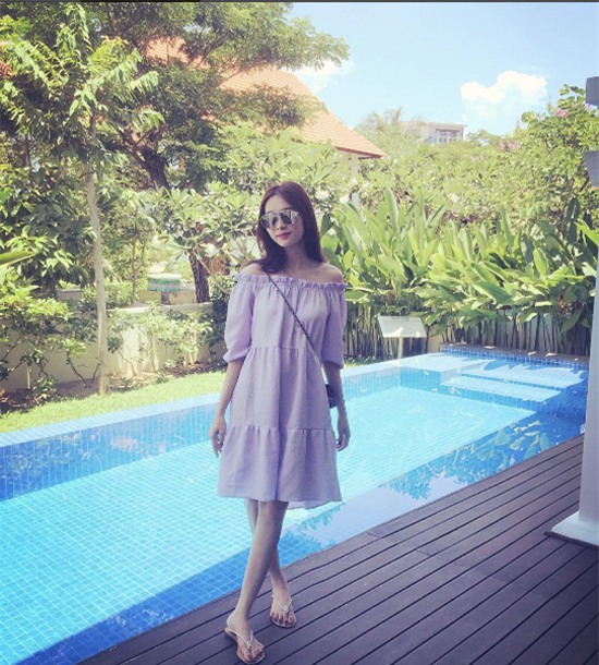 Hoa hậu Thu Thảo sở hữu vẻ đẹp thuần khiết, trong sáng. Chiếc váy trễ vai, chiết lyđiệu đà gam màu trang nhã rất hợp với nhan sắc hiếm có của cô. Hoa hậu kết hợpthêm đôi xăng đan thanh mảnh, túi đeo nhỏ tiện lợi. Phong cách của Thu Thảo làgợi ý lý tưởng cho bạn gái nhưng ngày đi biển, nghỉ mát...