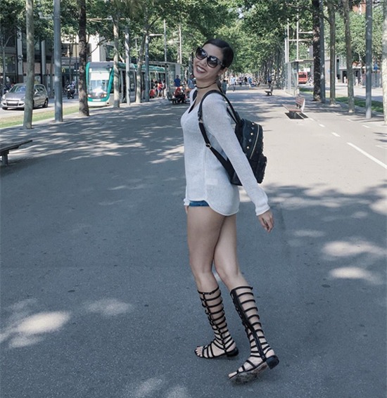 Á hậu Phạm Hồng Thúy Vân gây chú ý với style giấu quần shorts và xăng đan "chiến binh", ba lô hiện đại.