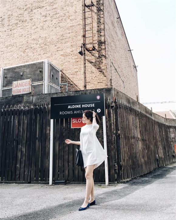 Á hậu Huyền My mặc váy trắng dịu dàng để "xua tan" cái nắng nóng oi cả của ngày hè.Đôi giày bệt búp bê vừa tiện lợi cho việc đi lại, hoạt động lại rất đáng yêu.
