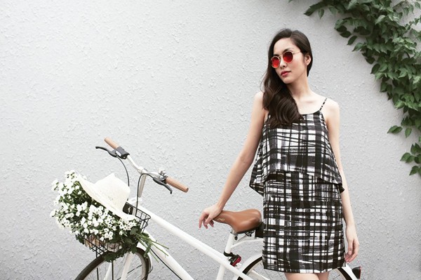 Tăng Thanh Hà và hình ảnh nhẹ nhàng, gợi cảm với áo hai dây free size kết hợp cùng chân váy ngắn đồng điệu về hoạ tiết.