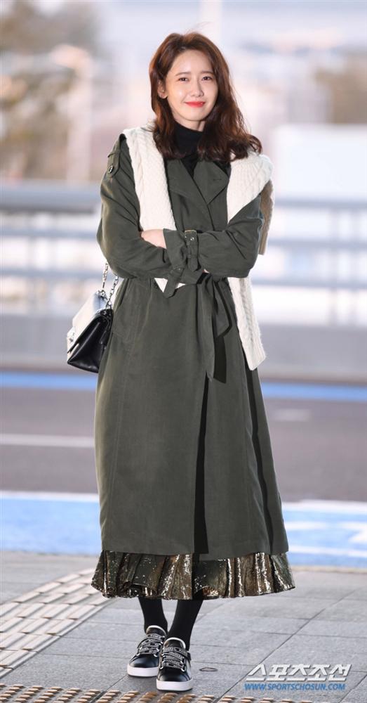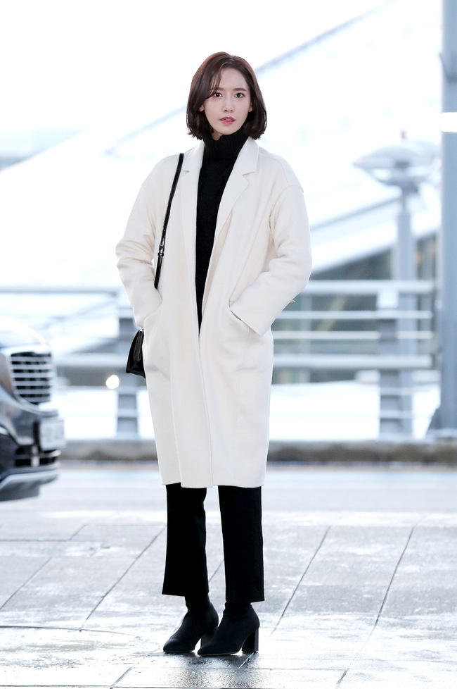 Những ngày giá lạnh thì mặc áo khoác dáng dài là quá chuẩn. Chị em nên chọn một chiếc áo mang gam màu trắng, layer bên trong toàn những items màu đen như: áo cổ lọ, quần âu và boots thấp cổ như Yoona, tổng thể trang phục sẽ vừa hài hòa, vừa trang nhã.