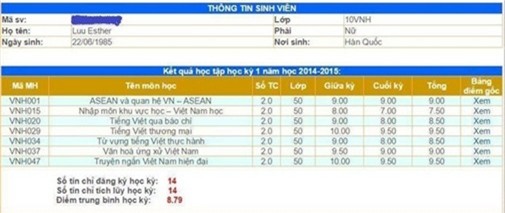 Cô từng nằm trong top 3 sinh viên xuất sắc nhất tại trường Đại học này. Bảng điểm của Hari Won trong quá trình học tại đây khiến nhiều người phải "nể" vì những con số cao chót vót.