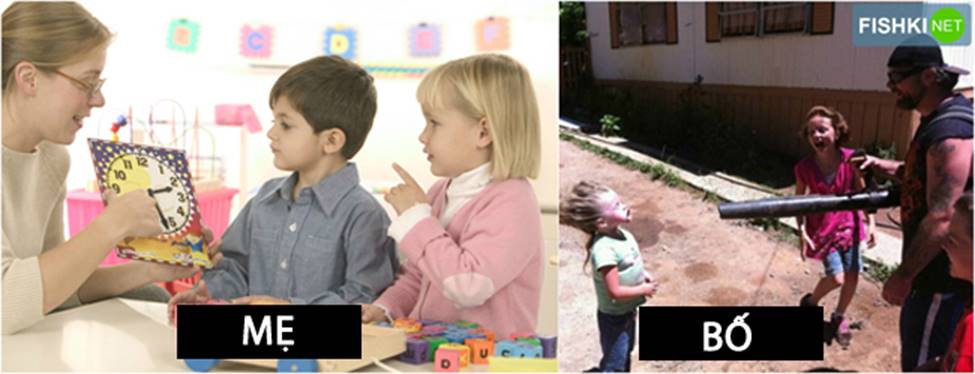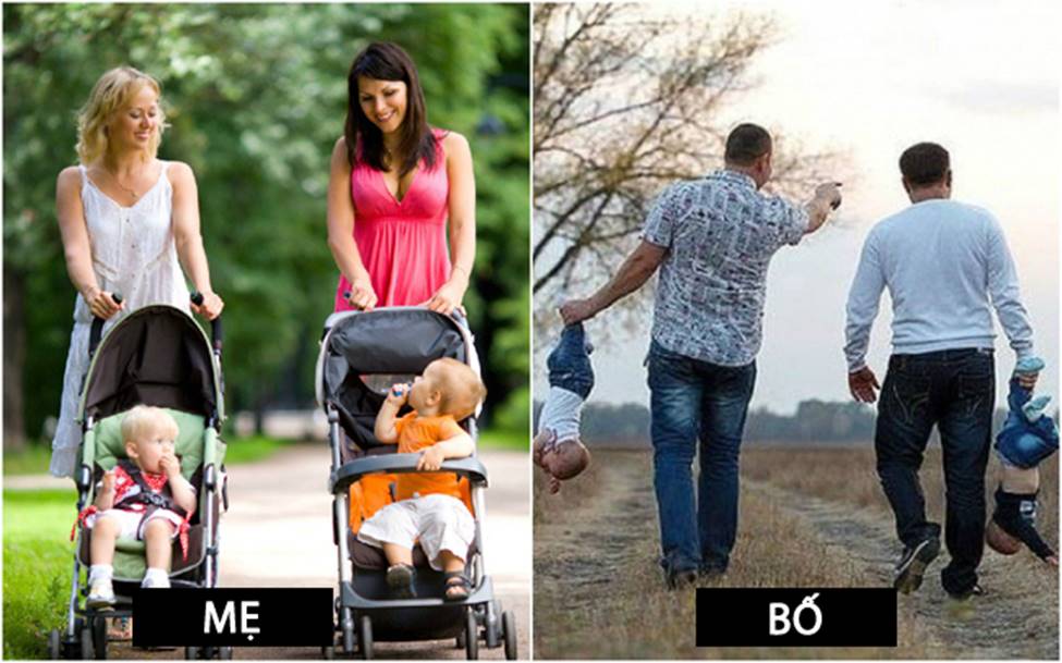 Cách chăm sóc con giữa các ông bố và bà mẹ luôn là sự đối lập "một trời, một vực".