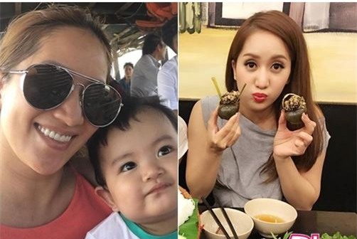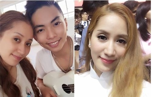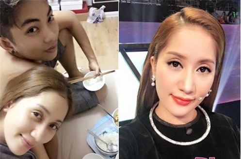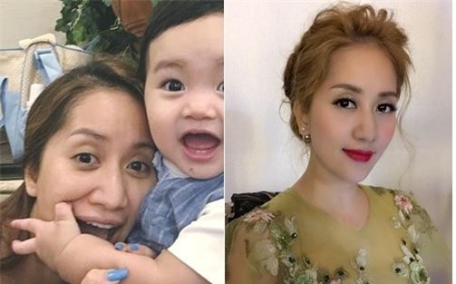 Rõ ràng, Khánh Thi ở ảnh bên phải trẻ trung hơn nhiều so với ảnh bên trái.