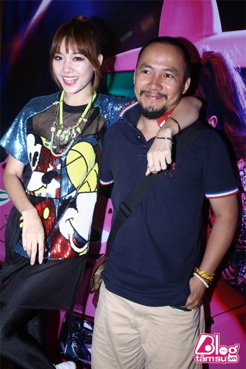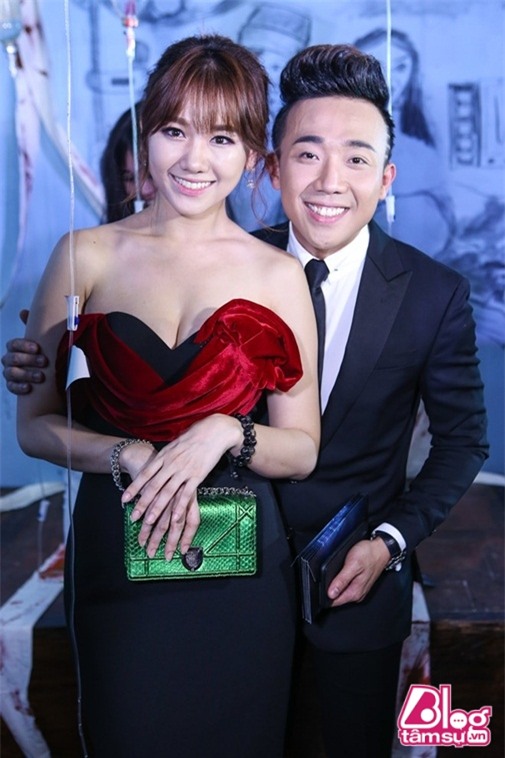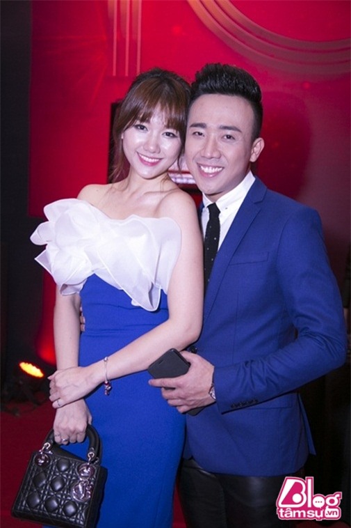 Hari Won luôn chủ động quàng tay qua người Tiến Đạt khi đi sự kiện