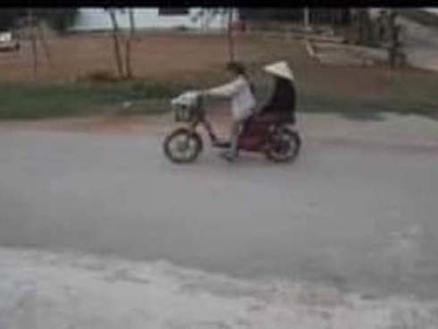 Theo clip từ nhà dân ghi lại, sau khi gửi xe đạp, bà Hương mang theo chiếc túi (loại bao tải) bên trong có đựng đồ vật.