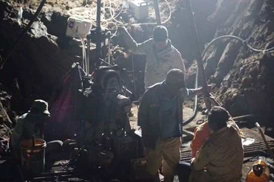 Sau 36 tiếng cật lực cứu hộ, hiện những mũi khoan của máy khoan cọc nhồi đã được cắm xuống lòng đất để nhổ trụ bê tông đưa bé trai ra ngoài.