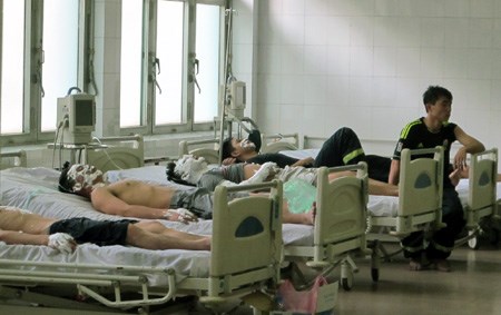 Tính đến 16h, có khoảng 7-8 nạn nhân, chủ yếu là Cảnh sát phòng cháy chữa cháy bị bỏng và được đưa đến khoa Cấp cứu - Bệnh viện 108 sơ cứu. Trong đó, một số nạn nhân bỏng nặng hơn đã chuyển sang khoa Bỏng - Bệnh viện Xanh-Pôn cấp cứu.