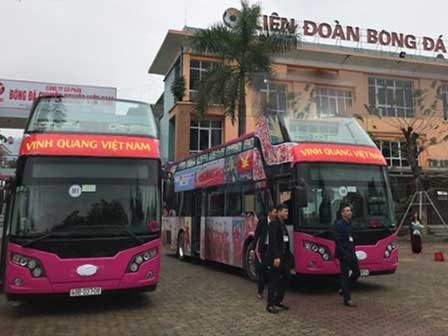 U23 Việt Nam đi trên xe buýt 2 tầng vẫy chào người hâm mộ