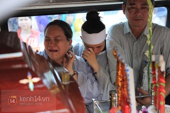Người thân trong gia đình nam diễn viên gục ngã khi linh cữu anh được đưa xuống lò hỏa thiêu Bình Hưng Hòa, TP HCM.