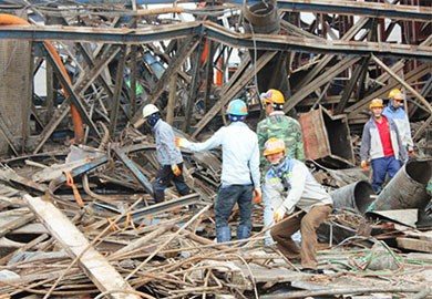 Sập giàn giáo Formosa: Đang giải cứu 2 công nhân dưới đống săt