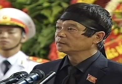 Ông Võ Điện Biên - con trai trưởng của Đại tướng - đứng lên đọc lời tưởng nhớ người cha vĩ đại và bày tỏ lời cảm tạ tới Đảng, Nhà nước và nhân dân.