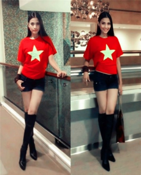 Bộ áo in hình quốc kỳ và quần sooc đen vốn bình thường, nhưng khi diện