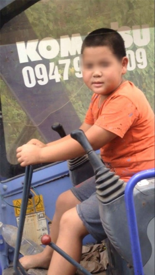 Bé trai lái máy xúc là cháu N.Đ 10 tuổi ( ở thôn Tam Nông, xã Hưng Đạo, huyện Tiên Lữ, HY) |