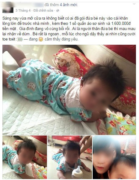 Dòng chia sẻ nhặt được đứa bé trước cửa nhà của Trâm.