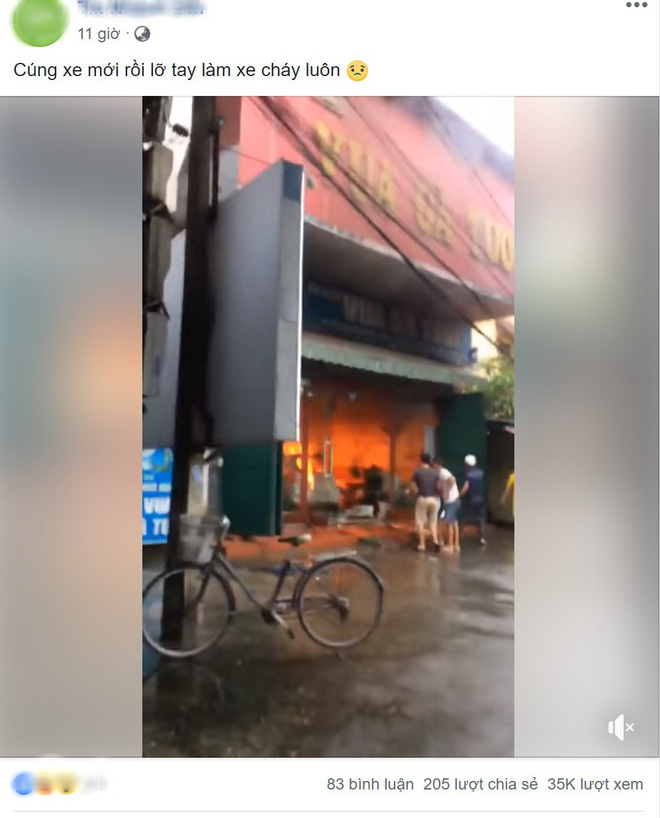Mới đây, nhiều fanpage trên MXH truyền tay nha chia sẻ đoạn clip ghi lại cảnh một chiếc xe bị cháy ở trong nhà, phía bên ngoài có rất nhiều người đang cố gắng dùng nước dập lửa kèm theo lời chia sẻ: ''Cúng xe mới rồi lỡ tay làm xe cháy luôn''.