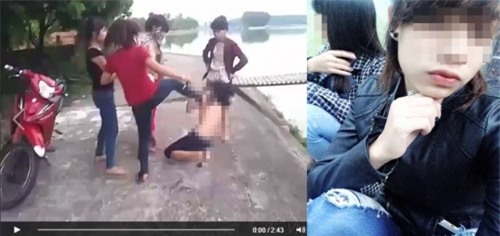 Điều đáng nói, nữ sinh bị đánh trong tình trạng bị lột áo. Hành hung xong, họ đưa áo 'đàng hoàng' cho nữ sinh mặc. Sau đó, nhóm nữ sinh này cười nắc nẻ và buông lời tục tĩu. Chưa dừng lại, chúng bắt nữ sinh lội xuống hồ lấy dép.