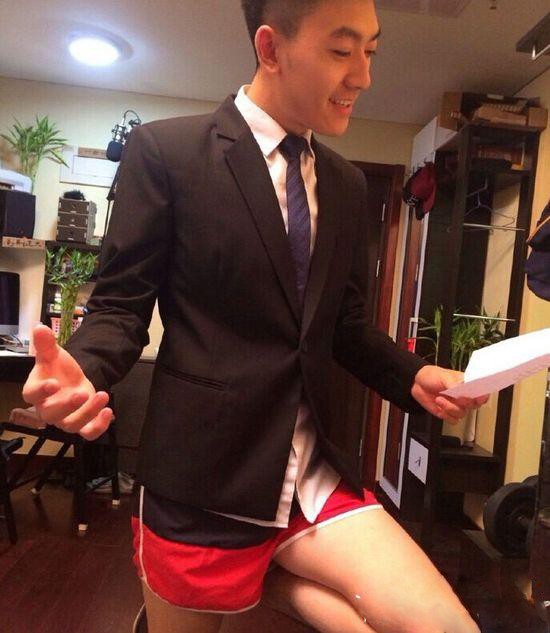 Chàng MC này còn để lộ hẳn cả một bên đùi khi ngồi dẫn chương trình nữa cơ này.