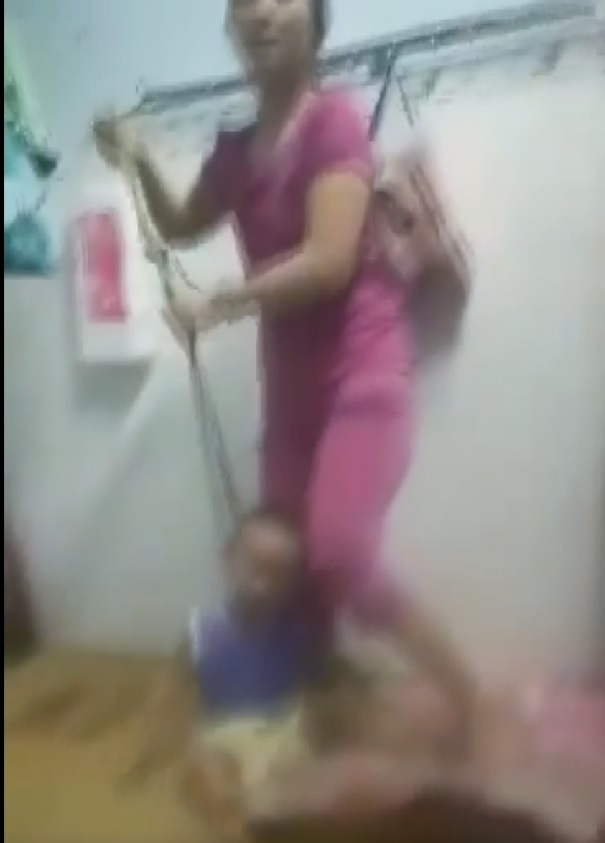 Đoạn clip đang trên mạng xã hội được xác định xảy ra cách đây hơn một tuần, không chỉ bé trai bị cột dây vào cổ đánh đập mà bé gái cũng bị Thúy lấy dây thừng trói cổ hành hung.