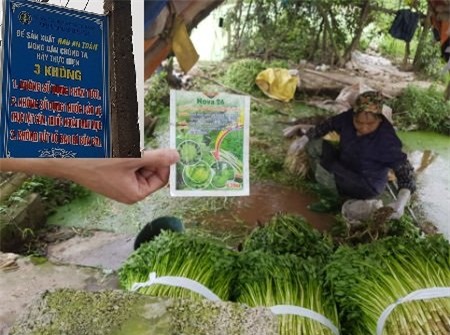Những biển hiệu như: “Để sản xuất rau an toàn nông dân chúng ta hãy thực hiện 3 không: Không sử dụng phân tươi – Không sử dụng thuốc bảo vệ thực vật cấm, thuốc ngoài danh mục – Không vất bỏ bao bì bừa bãi” và “Vì sức khỏe cộng đồng, mỗi người dân hãy là một giám sát viên trong sản xuất rau an toàn” được cắm dựng từ đầu đường đến bờ ruộng. Thế nhưng, sự thật lại hoàn toàn ngược lại.