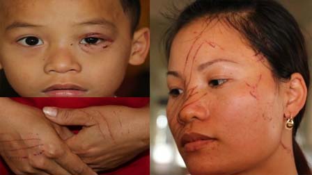 Tuy nhiên, vợ chồng ông Phúc cùng con vẫn kéo đến xông vào đánh 2 mẹ con chị Vân. “Bà Nhuần và con gái cầm dao lam rạch khắp mặt, cổ…, rồi túm tóc đập vào tường, đánh đấm và xé rách áo. Còn con trai tôi cũng bị đánh bầm và rách cả mắt”, anh Võ bức xúc...