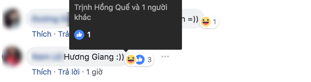 Bên dưới dòng trạng thái, Hồng Quế bấm biểu tượng cười haha cho bình luận chỉ đích danh Hương Giang.