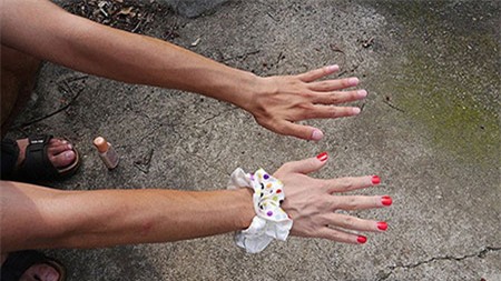 Đôi bàn tay trắng trẻo với màu sơn móng đỏ quyến rũ |