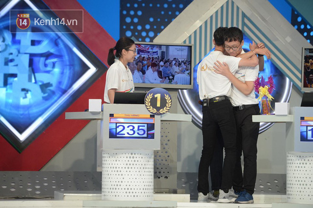 Bức ảnh gây tranh cãi nhất trận Chung kết Đường lên đỉnh Olympia khi Quán quân đứng lủi thủi một góc nhìn 3 nam sinh ôm nhau.