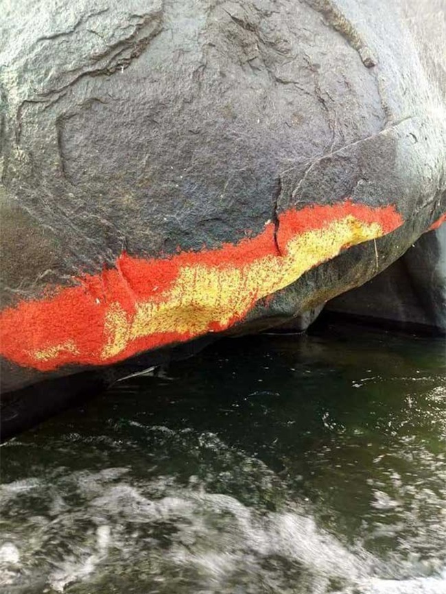 Theo hình ảnh người dân địa phương đưa lên mạng, thì dưới chân tảng đá lớn này hình thành nên một lớp xốp bám với nhiều màu sắc, hình dạng giống một chú cá có màu đỏ, vàng, trắng, đen rất rực rỡ. Không ít người còn thêm thắt cho phần ly kỳ rằng đây là một hiện tượng lạ, báo hiệu một điềm lành trong năm Mậu Tuất. Riêng người dân ở xã Tiên An, không kể già trẻ, lớn bé cứ lũ lượt đến bờ sông Trạm ngày một đông chỉ để được chiêm ngưỡng “lộc trời nở hoa”.