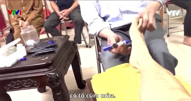 Đến chữa bệnh, không cần phải nói bệnh, chỉ cần ngồi vào ghế, người được gọi là thầy lang sẽ bấm vài huyệt ở chân, dùng một dụng cụ có đầu bằng sắt đặt bên trong vỏ bút dạ để ấn vào chân rồi phán bệnh. Ai cũng ủ vài chục bệnh trong người.