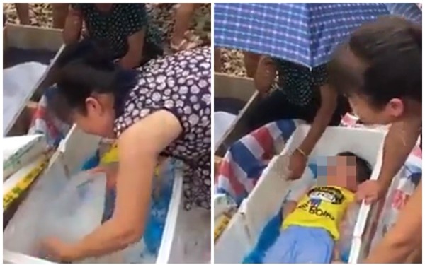 Và lời giải thích nữa cho clip này là đây là sự chuẩn bị cho 1 tang lễ, vì điều kiện vật chất ở nơi này không tốt nên thi thể của bé được ướp bằng đá và thùng xốp để tránh bị thối rữa.