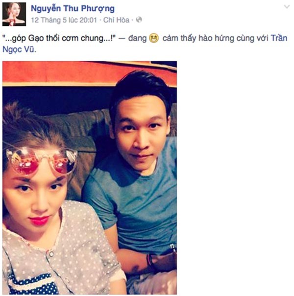 Thời gian gần đây, ca sĩ Thu Phượng thường xuyên đăng tải hình ảnh chụp chung với ca sĩ trẻ Trần Ngọc Vũ lên trang cá nhân kèm theo những dòng chia sẻ “mùi mẫn”.