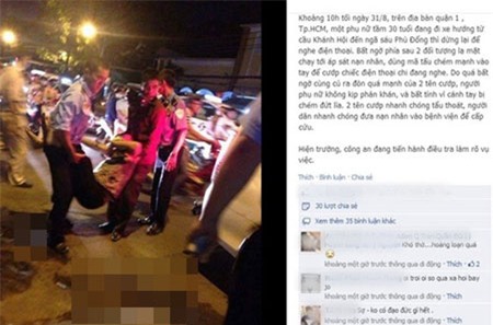 Gần nửa đêm ngày 31/8, thông tin về vụ việc “chặt tay cướp điện thoại giữa Sài Gòn” được đăng tải trên một trang Facebook có tên Tý Nhóc Lóc Chóc. Sau đó, “vụ việc” này đã được cư dân mạng, các diễn đàn… chia sẻ, dẫn lại với tốc độ chóng mặt, gây hoang mang, lo sợ cho nhiều người.