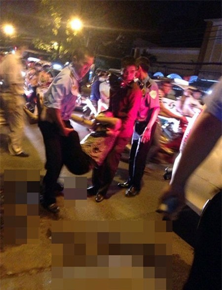 Thông tin trên được đăng kèm hình ảnh hai thanh niên đang khiêng một người phụ nữ có vẻ đang bất tỉnh, xung quanh có nhiều người chứng kiến.