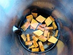 Trường hợp không có máy làm sữa đậu nành, bạn cho bí ngô và đậu tương