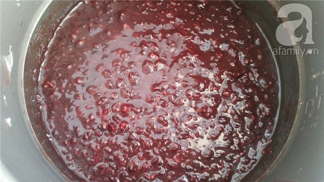 Gạo nếp cẩm vo sạch, ngâm với nước từ 4 đến 6 tiếng, rồi cho ra để ráo nước.