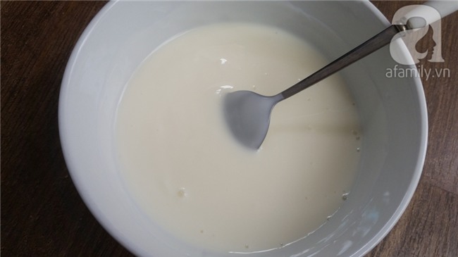 Sữa chua cho ra bát đánh tan nhuyễn, mịn.