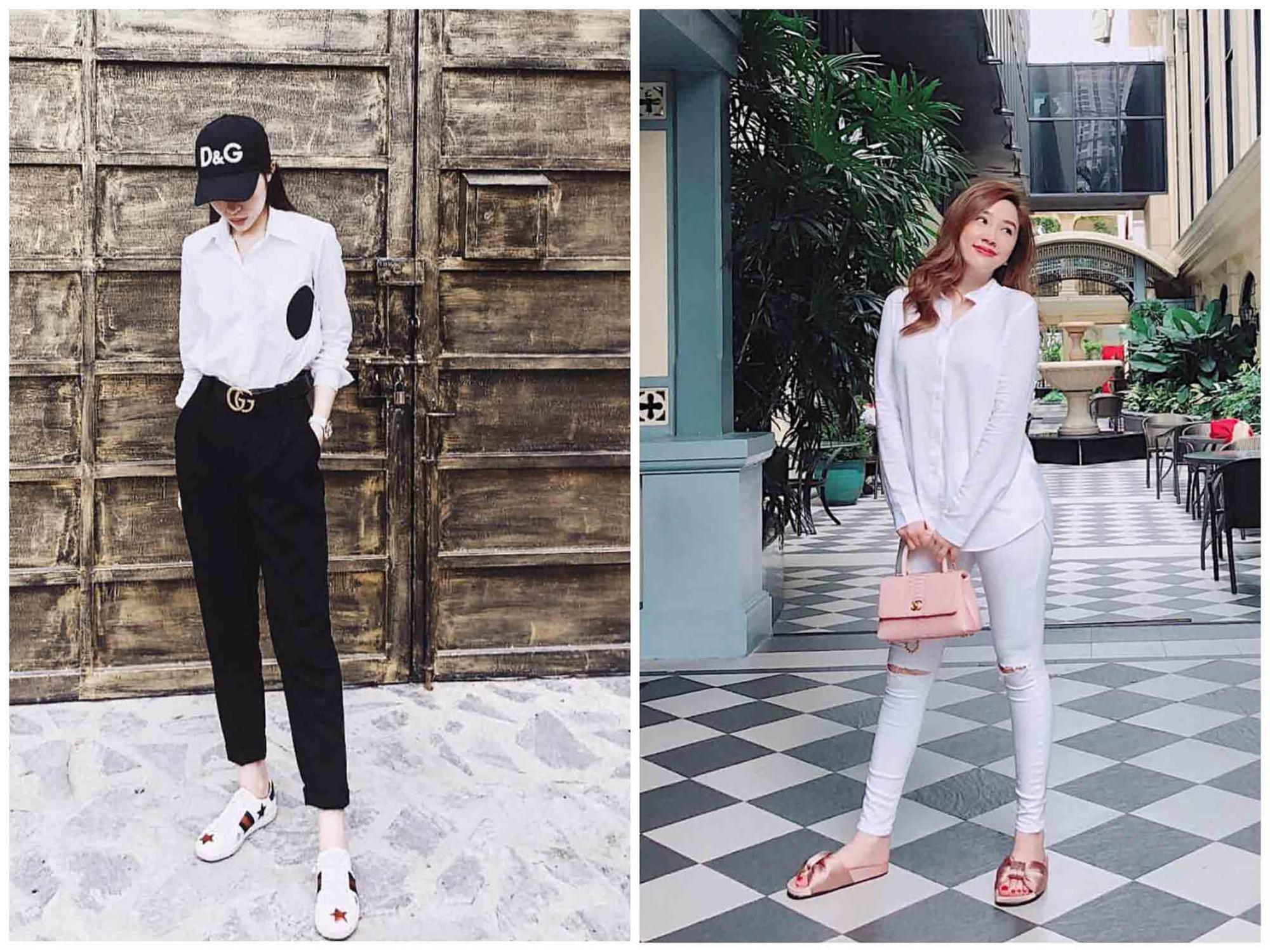 Những kiểu áo sơ mi trơn cơ bản rất được lòng cả 2 người đẹp.
