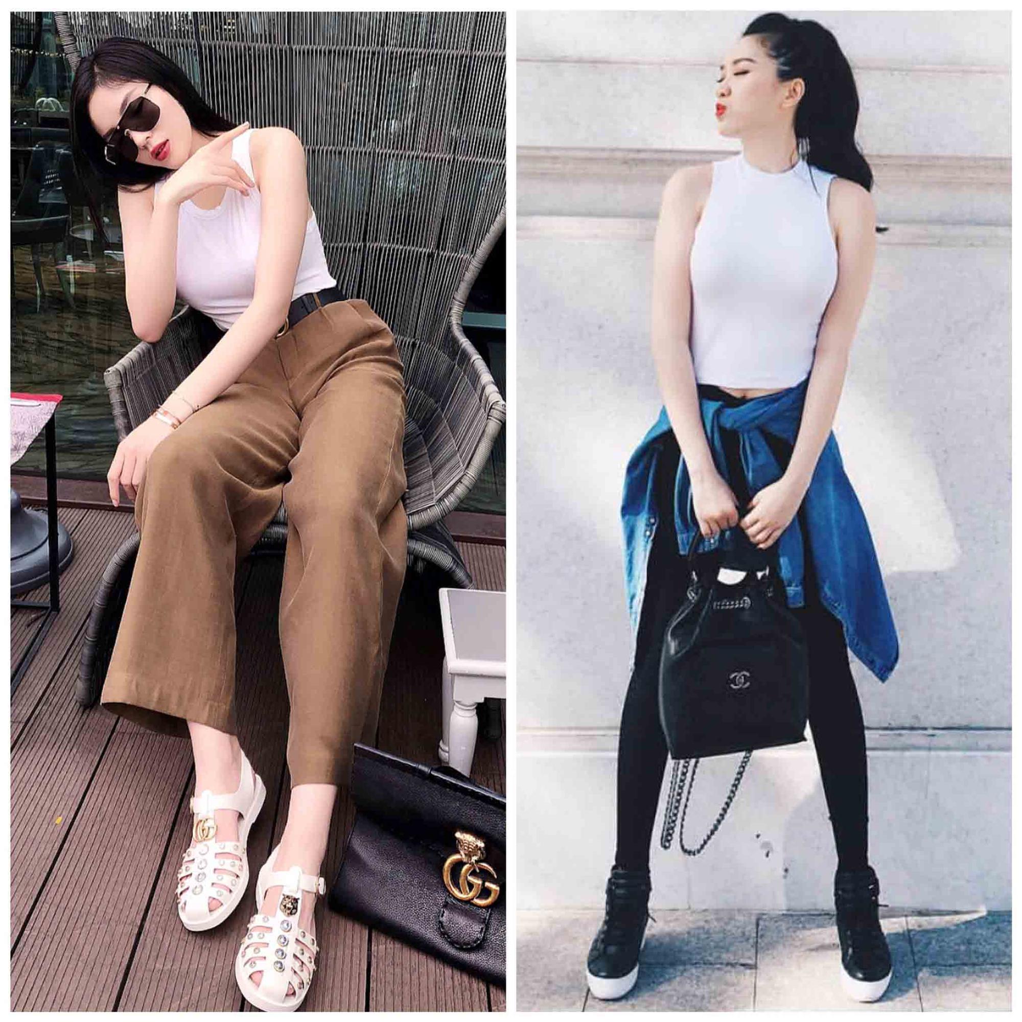 Một món đồ yêu thích khác của cả 2 mỹ nhân đó chính là áo ba lỗ - tank top. Những chiếc áo ba lỗ khoẻ khoắn, năng động được Kỳ Duyên và Bảo Thy rất "cưng" cho set đồ streetstyle của mình. Màu sắc được họ mặc nhiều nhất chính là 2 tông màu trắng và đen.