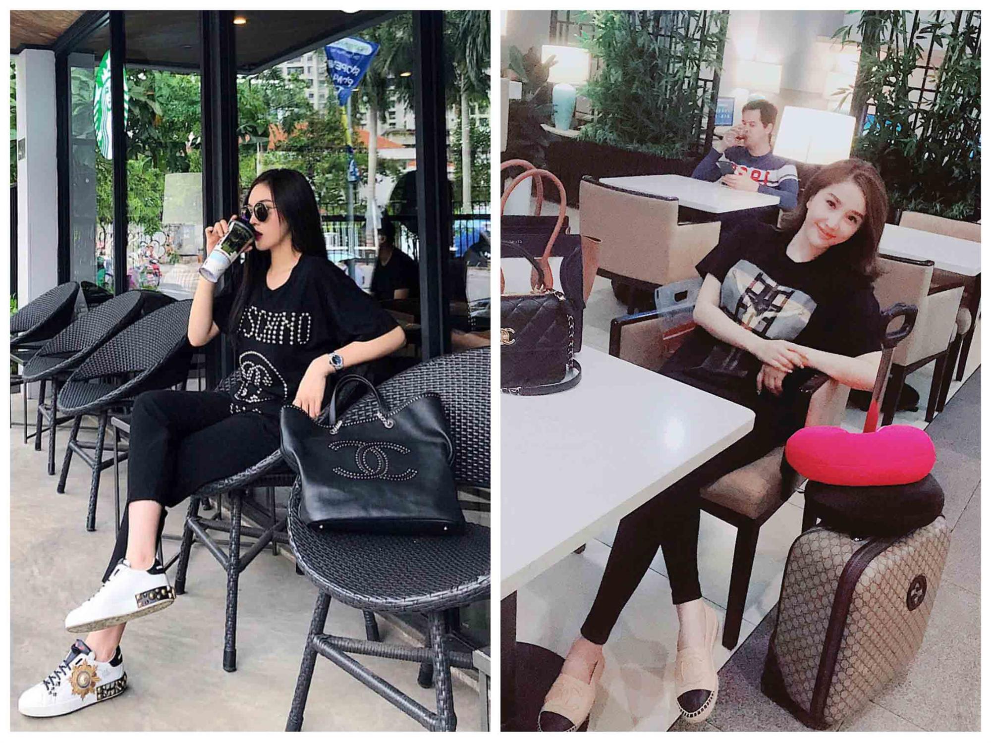 Cùng diện áo phông đen, quần skinny hết sức đơn giản nhưng tổng giá trị set đồ của cả 2 người đẹp lên đến cả trăm triệu.