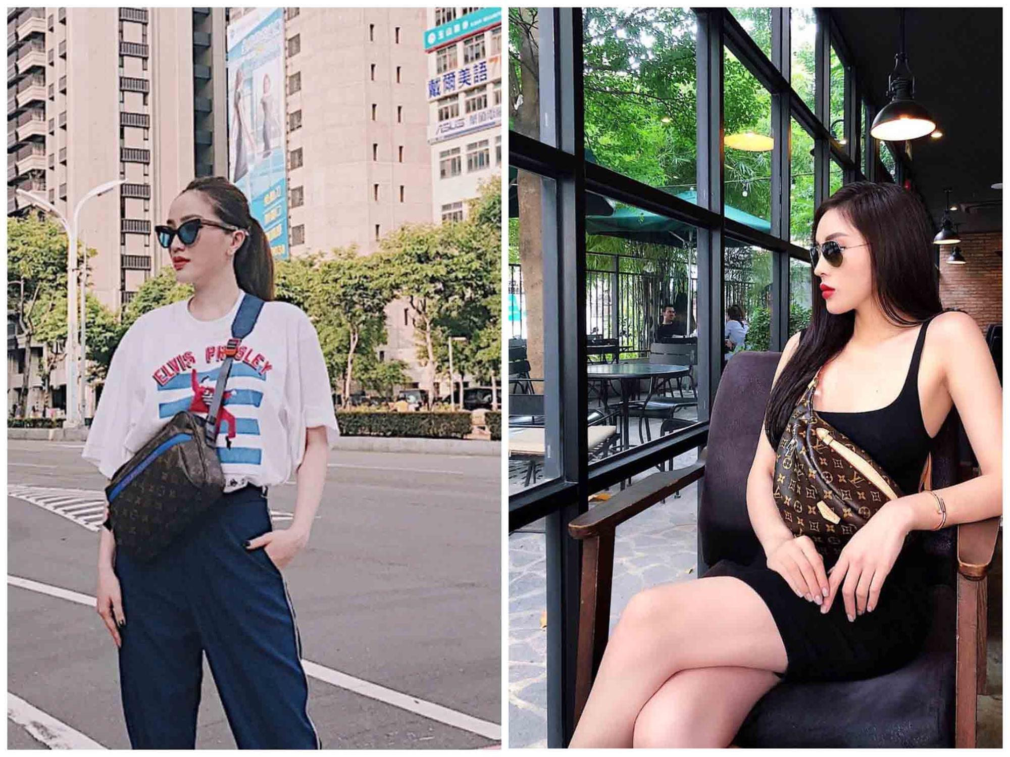 Cùng là dáng túi đeo trước ngực của nhà mốt danh giá Louis Vuitton nhưng mỗi người đẹp lại diện một kiểu thiết kế với cùng 1 bộ trang phục khác nhau.