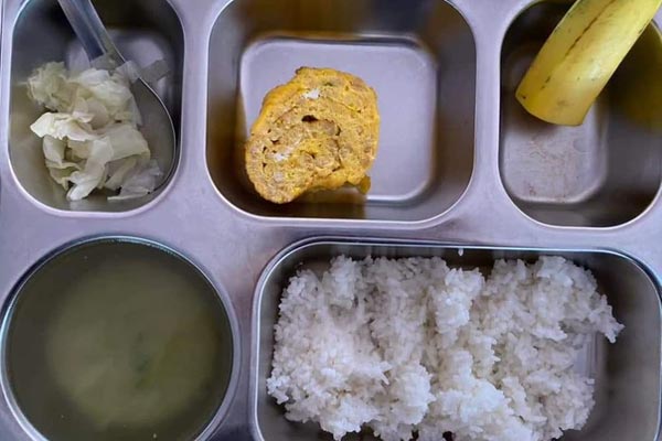 Với hình ảnh phụ huynh đăng lên mạng, lãnh đạo nhà trường cho biết, có thể do góc chụp nên nhìn ít, còn thực tế miếng trứng cuộn thịt rất lớn. Phía trường cũng cung cấp thực đơn gồm các món như phụ huynh chụp đăng tải lên mạng xã hội, trong đó, chỉ có món canh nhà thường thay canh bí đỏ nấu thịt nạc bằng canh bầu nấu tôm.