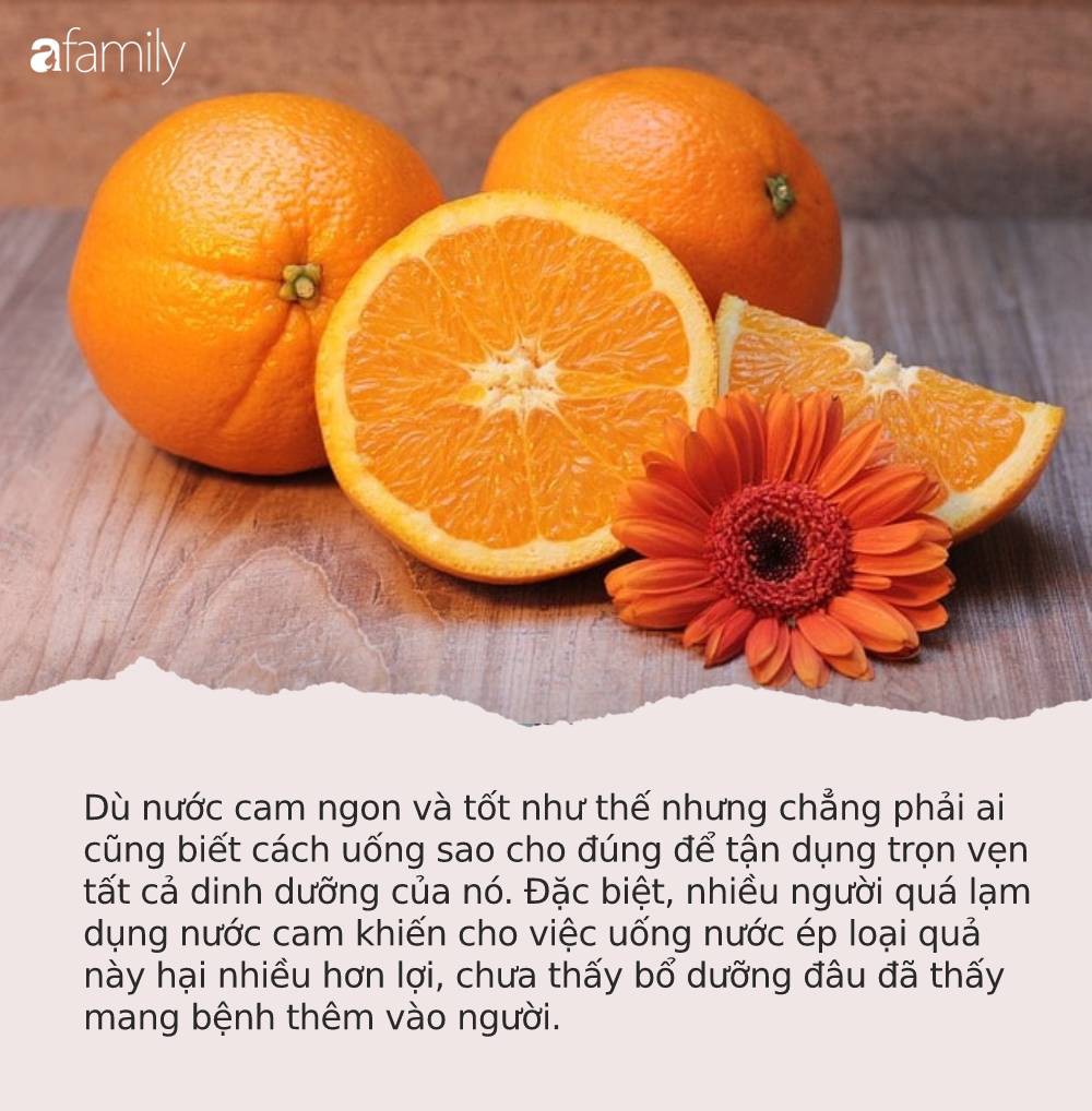 - Không uống nước cam khi đang đói vì nước cam nhiều axit sẽ ảnh hưởng đến niêm mạc dạ dày.