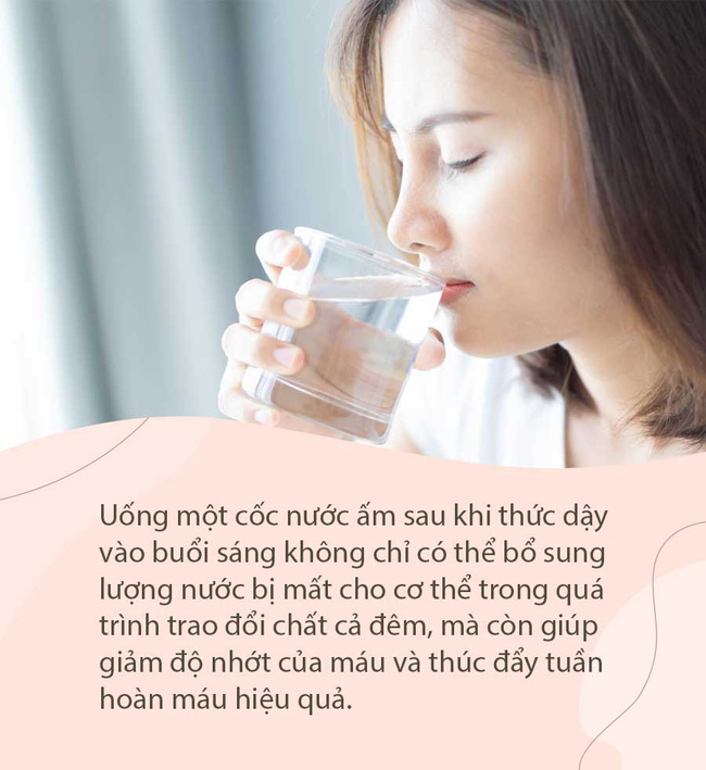 Uống một cốc nước ấm sau khi thức dậy vào buổi sáng không chỉ có thể bổ sung lượng nước bị mất cho cơ thể trong quá trình trao đổi chất cả đêm, mà còn giúp giảm độ nhớt của máu và thúc đẩy tuần hoàn máu hiệu quả. Nước ấm là sự lựa chọn tốt nhất để uống, nếu bạn đang bị táo bón, có thể thêm một chút mật ong.