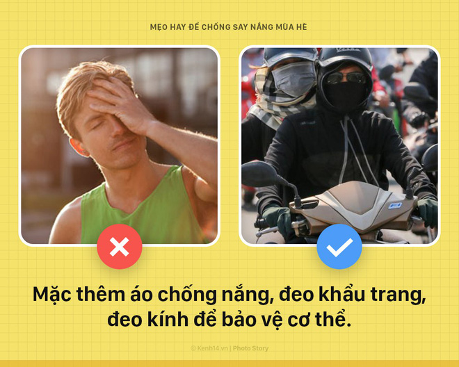Ngoài ra khi đi nắng, bạn cũng nên mặc thêm áo chống nắng, đeo khẩu trang, đeo kính để bảo vệ cơ thể.