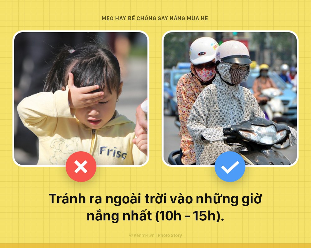 - Tránh ra ngoài trời vào những giờ nắng nhất (thường từ 10 giờ đến khoảng 3 giờ chiều).